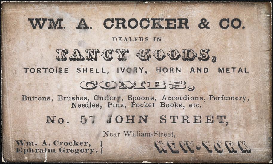 Wm. A. Crocker & Co. Fancy Goods and Comb Warehouse