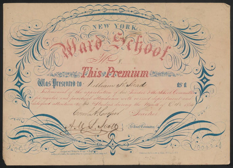 [Testimonial to punctuality, deportment and diligent attention to study.]
