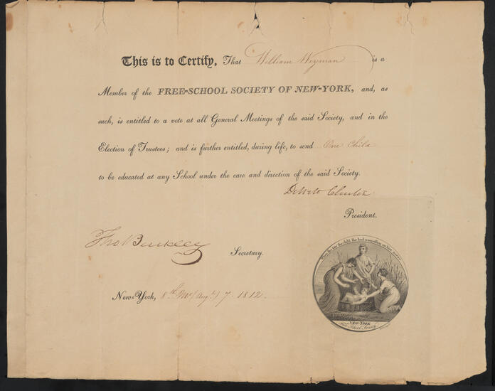 Agriculture and Domestic Manufactures [Certificate of membership to the New York County Agricultural Society.]