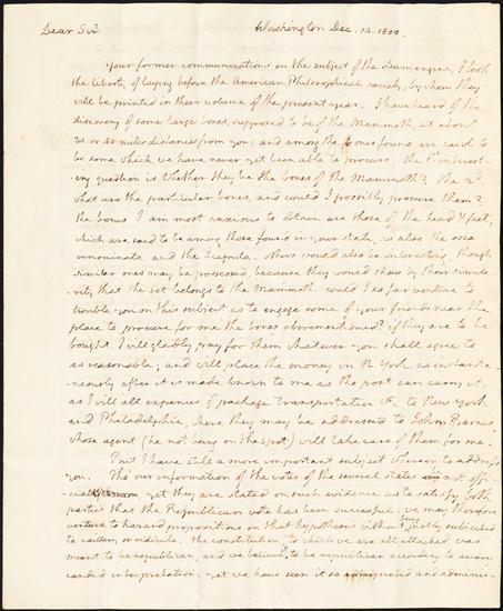 Letter from President Thomas Jefferson to Robert Livingston
