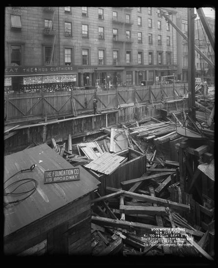 Woolworth Building, South Section S. W. Corner Looking N. E. [Construction zone.]