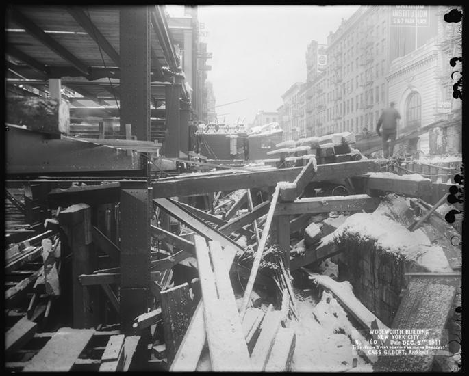 Woolworth Building, Looking West From Broadway [Construction zone.]