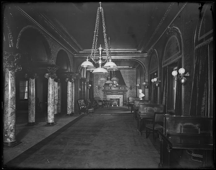 65 Liberty Street. New York Chamber of Commerce, side of Assembly Hall showing pictures.