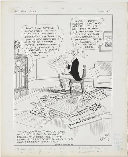 Mr. Milquetoast is asked by a Californian and a New Yorker if he is going to the World's Fair.