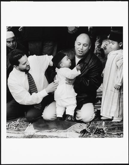Men and boys at prayer time during Eid ul-Fitr at the end of Ramadan, Bay Ridge, Brooklyn