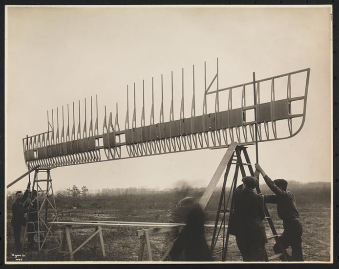 Cantilever Aero Co., exterior, wooden frame of wing of aeroplane.