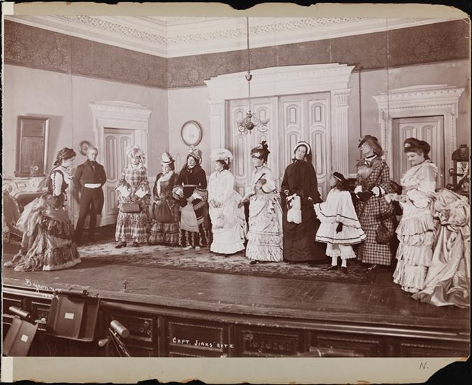 Description A scene from Act II of "Captain Jinks of the Horse Marines" by Clyde Fitch, presented at the Garrick Theatre and featuring Ethel Barrymore in her Broadway debut.