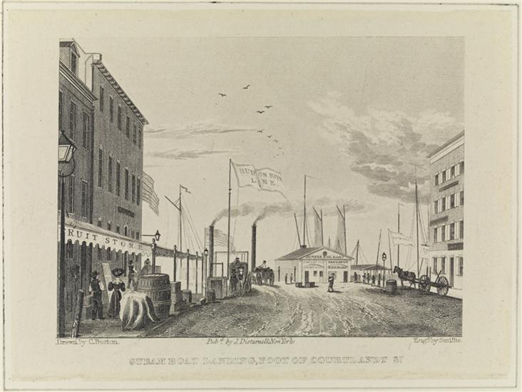 A. Bowling Green, New York; B. Steam Boat Landing, Foot of Cortlandt St
