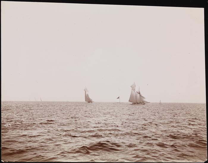 Numbered on neg. | "723" in pencil on verso--first series neg number. | "Yachting 50th Regatta Shamrock & Elsemarie" in pencil on verso.