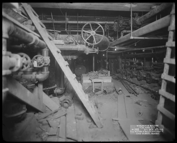 Woolworth Building, sub-basement midway between boiler and engine room looking east.