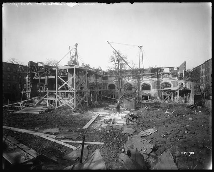 Atlantic Avenue and Washington Avenue. College of Immaculate Conception [during] construction.