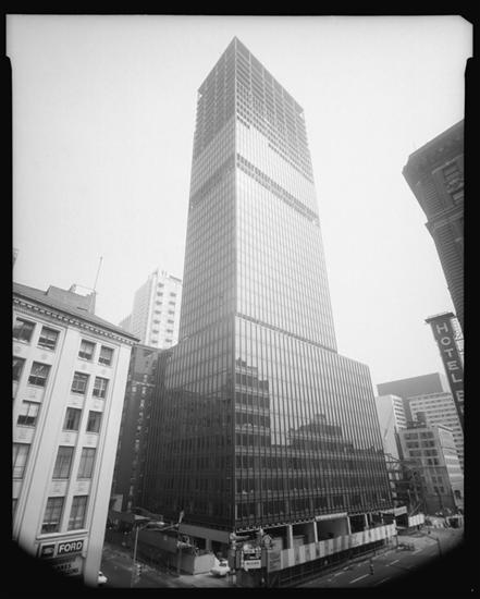 Park Avenue between 53rd and 54th Street. First National City Bank Building, exterior detail, central entrance doors.