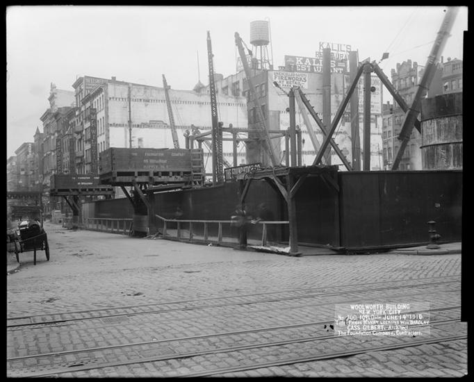 Woolworth Building, From Broadway Side Looking N. W. [Construction zone.]