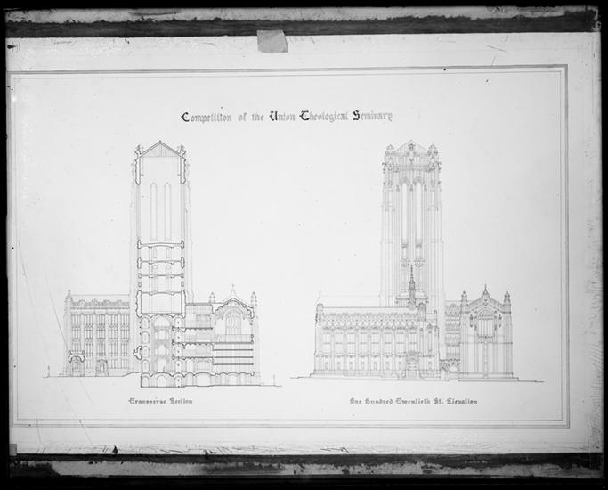 Union Theological Seminary competition, section and elevation.