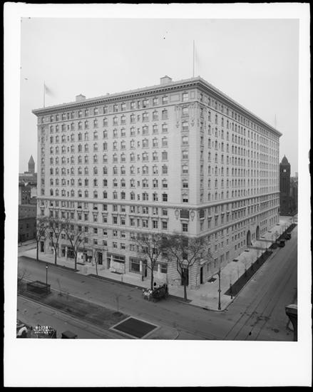 87th Street and Amsterdam Avenue, S.E. corner. Apartment house, view of exterior and Majestic Coal chute.