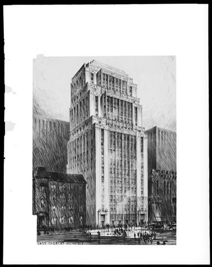 4th Avenue at the corner of East 30th Street. Office building, watercolor rendering.