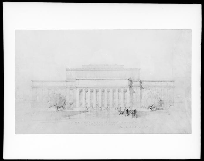 New library for Columbia University. Scheme "F", north elevation rendering.