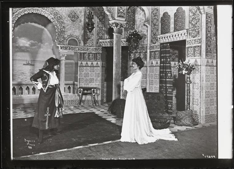 A scene from Paul M. Potter's play "Under Two Flags" presented by Charles Frohman in 1901 featuring Blanche Bates as Cigarette.