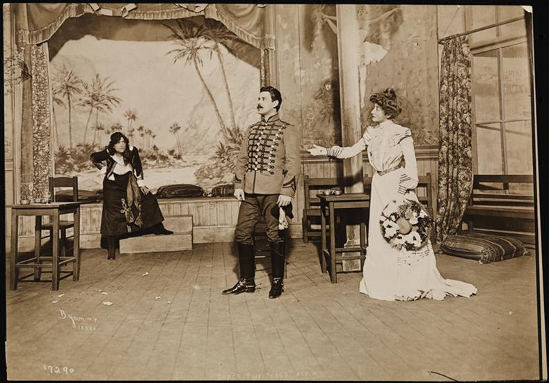 A scene from Paul M. Potter's play "Under Two Flags" presented by Charles Frohman in 1901 featuring Blanche Bates as Cigarette.