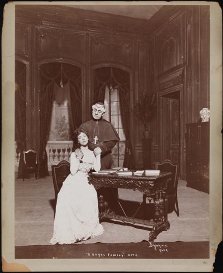 A scene from R. Marshall's comedy "A Royal Family" presented by Charles Frohman at the Lyceum Theatre in 1900, featuring Annie Russell as the Princess Alestine Victorine Angela.