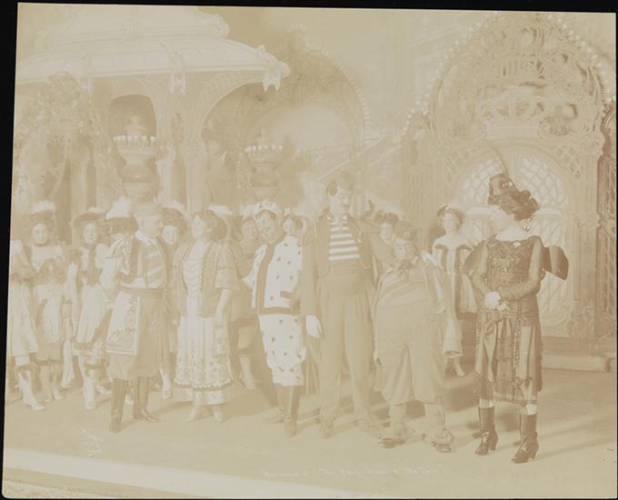A scene from Weber's Burlesque of the Henry W. Savage production of Lehar's "The Merry Widow" and a production of "The Devil," presented at Webers Theatre in 1909.