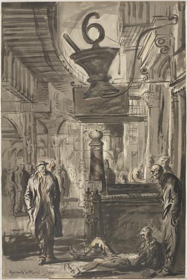 [Destitute men hanging out along the Bowery.]