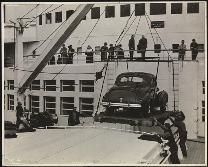 French Line, Pier #88 N.R., Passegers Autos Being Put Aboard S.S. "Normandie".