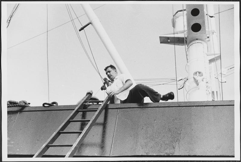 [Crew member on a ferry.]