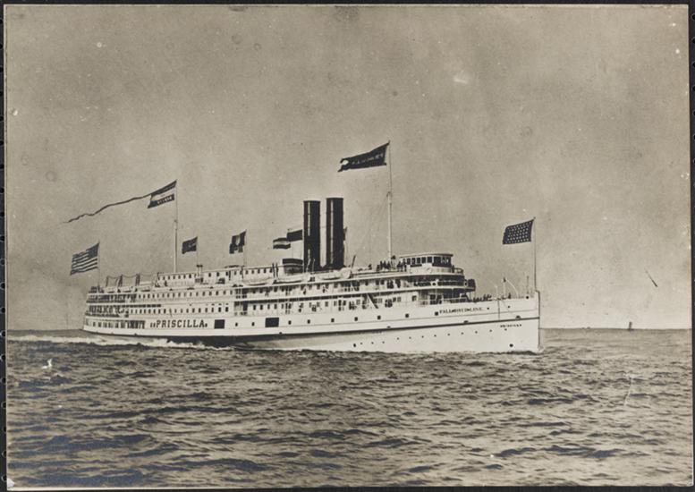 Str. Puritan leaving pier at Fall River for New York. Landing place of Fall River Line at Newport.