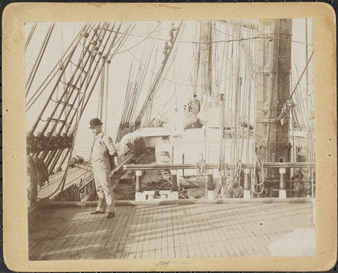 [Crew on the deck of a sailboat.]