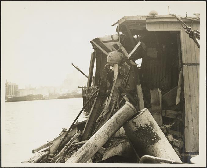 In ink, on verso: America 3-4-43 / Accident with Erie RR Tug / Johnson City / 1910 / 3-4-43