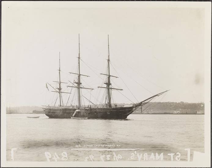 New York City views. Spanish School ship from above in Seaman's Institute.