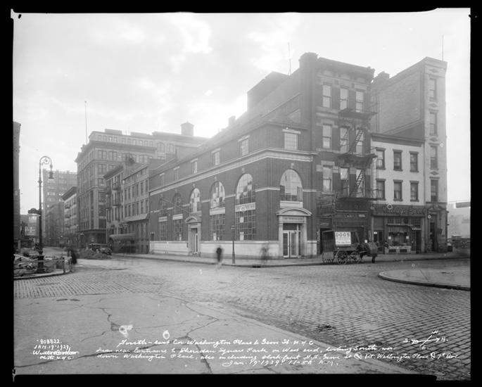 Grove Street and Washington Place, S.E. corner. Sheridan Square, record photo.