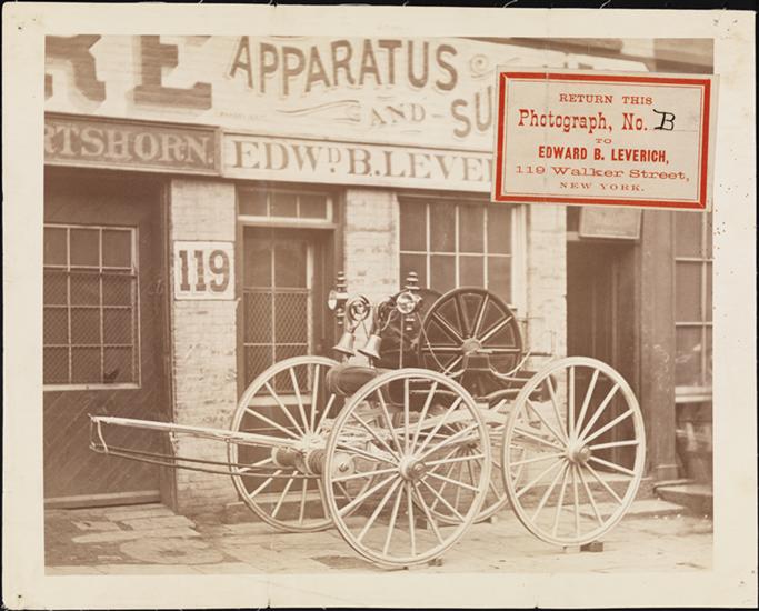 [Horse-drawn fire engine outside of station for Engine Company 31.]