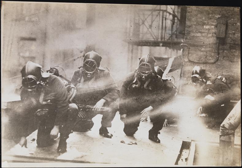 [Firemen training with gas masks.]