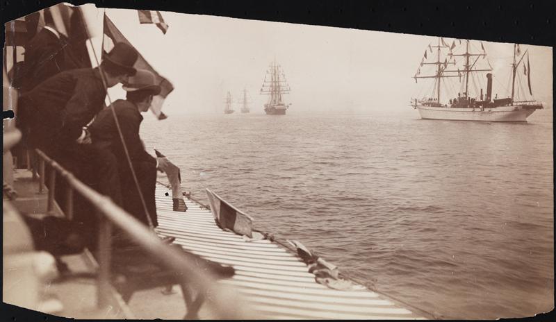 [Photograph of a drawing of the reception and naval procession for the arrival of the Statue of Liberty.]