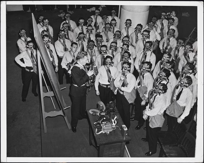 [Firemen training with gas masks.]