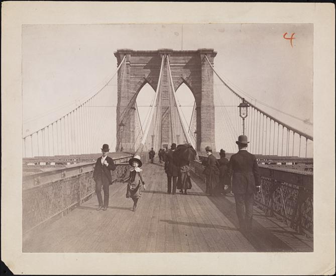 [A. Brookyn Bridge ; B. Pedestrians on Brooklyn Bridge.]