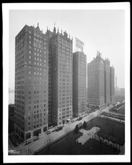 Madison Avenue between 43rd and 44th Streets. Hotel Biltmore, detail of upper stories.