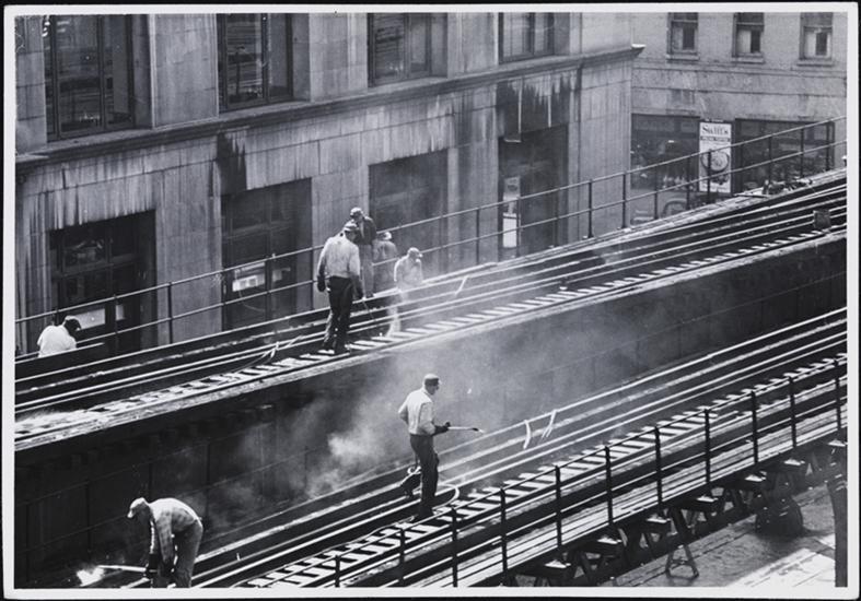 [Cutting through trusses of the Third Avenue El near Cooper Square.]