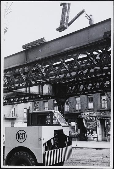 [Cutting through trusses of the Third Avenue El between 6th and 7th Streets.]
