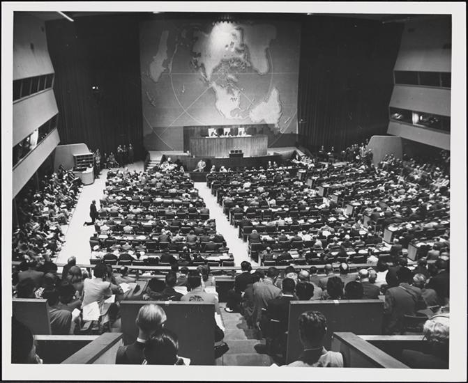 United Nations [United Nations General Assembly, showing delegates from India.]