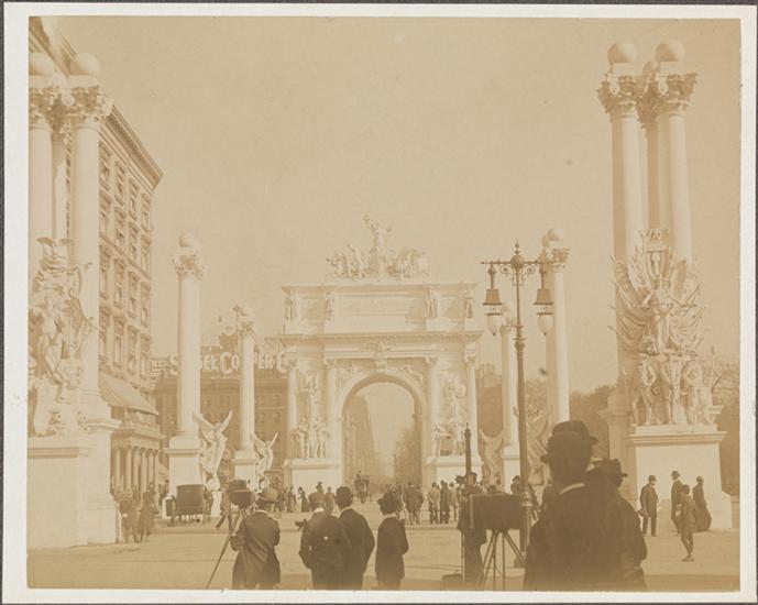 [Crowds at Dewey Arch.]