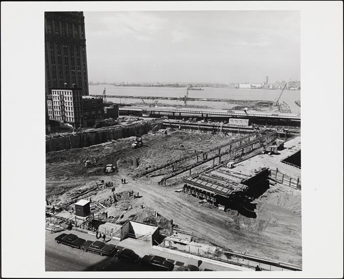 [Aerial view of the World Trade Center construction site.]