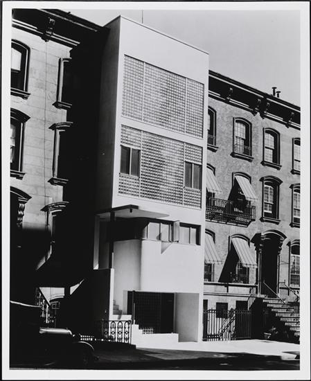 [Back exterior view of the Lescaze home, 211 East 48th Street.]