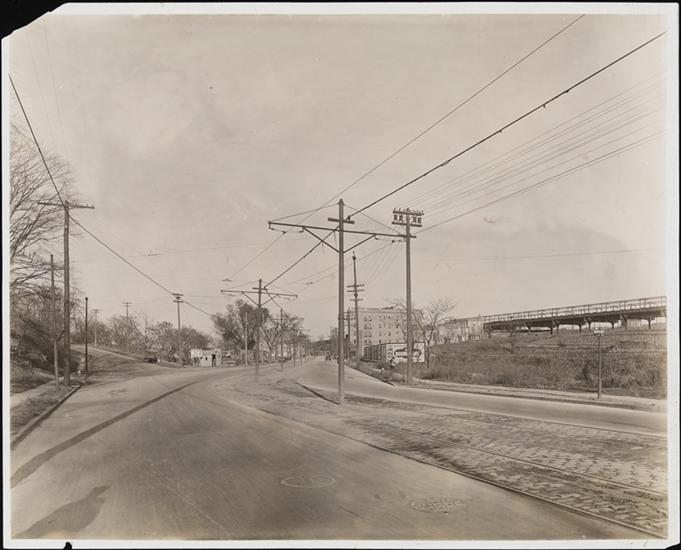 [Boscobel Avenue showing Huber property on right and new subway station on left.]