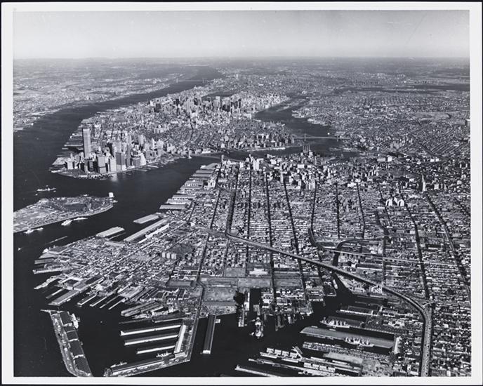 [Aerial view of Manhattan and Brooklyn Marine Terminal Piers.]