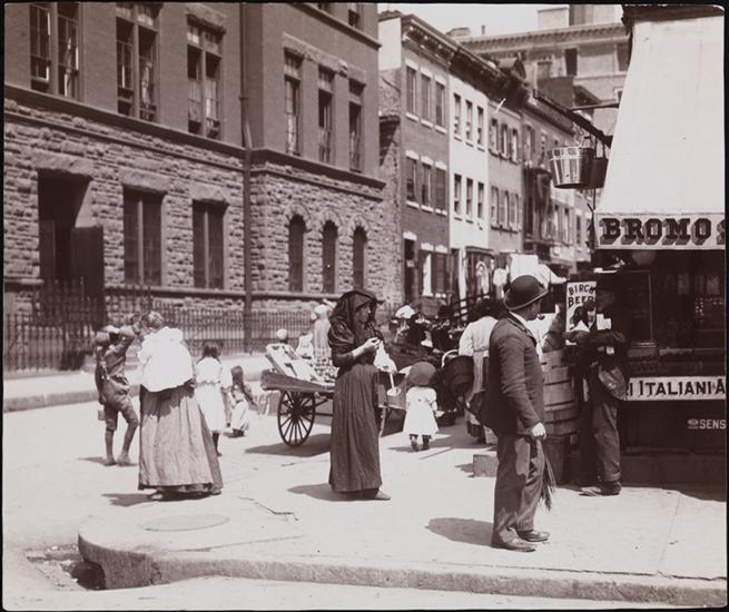 Frankfurter Vendor. [Hot dog vendor on South Street.]
