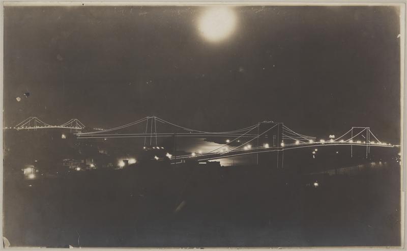 [Brooklyn Bridge at night.]