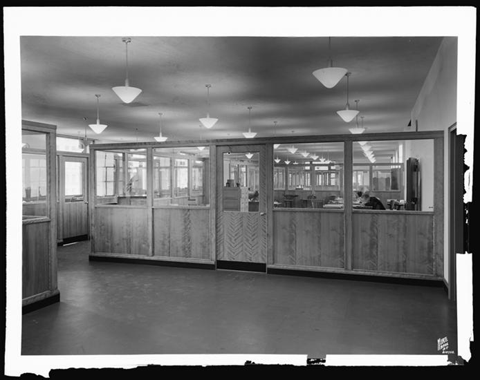 Grand Army Plaza and Eastern Parkway. Brooklyn Public Library, librarians' private office, view of shelves.